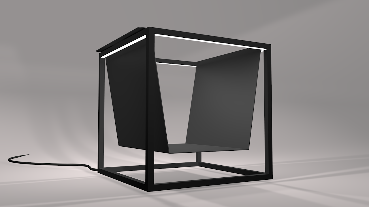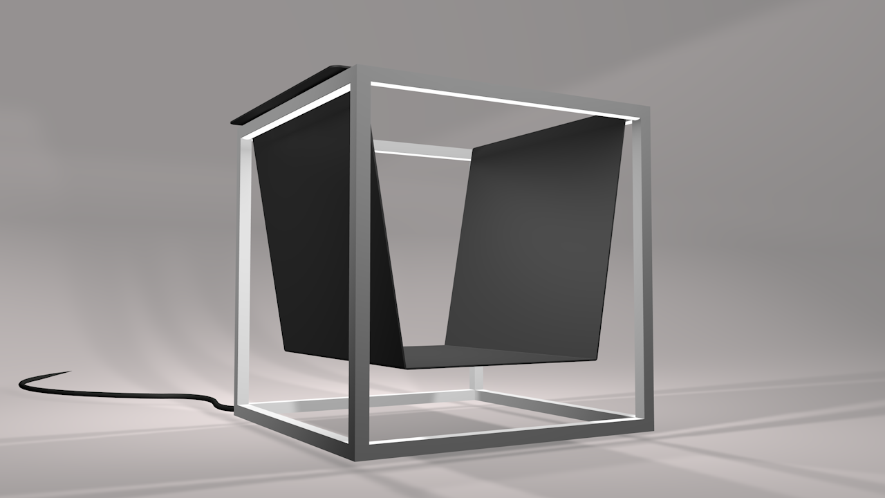 culuc in the Deejay version, suitable for indoor use made of steel and powder coating. Sec. perimeter profile 15x15 mm. LED light 12V white IP67 Cable covered in fabric same color body lamp Cradle basket in aluminum 3 mm painted Ral 7016 Complete with power supply input voltage 220v AC 50/60 Hz (alternating current) AC 0.64-0.52 Voltage output 12V DC (direct current) Waterproof, water resistant. Shuko plug.